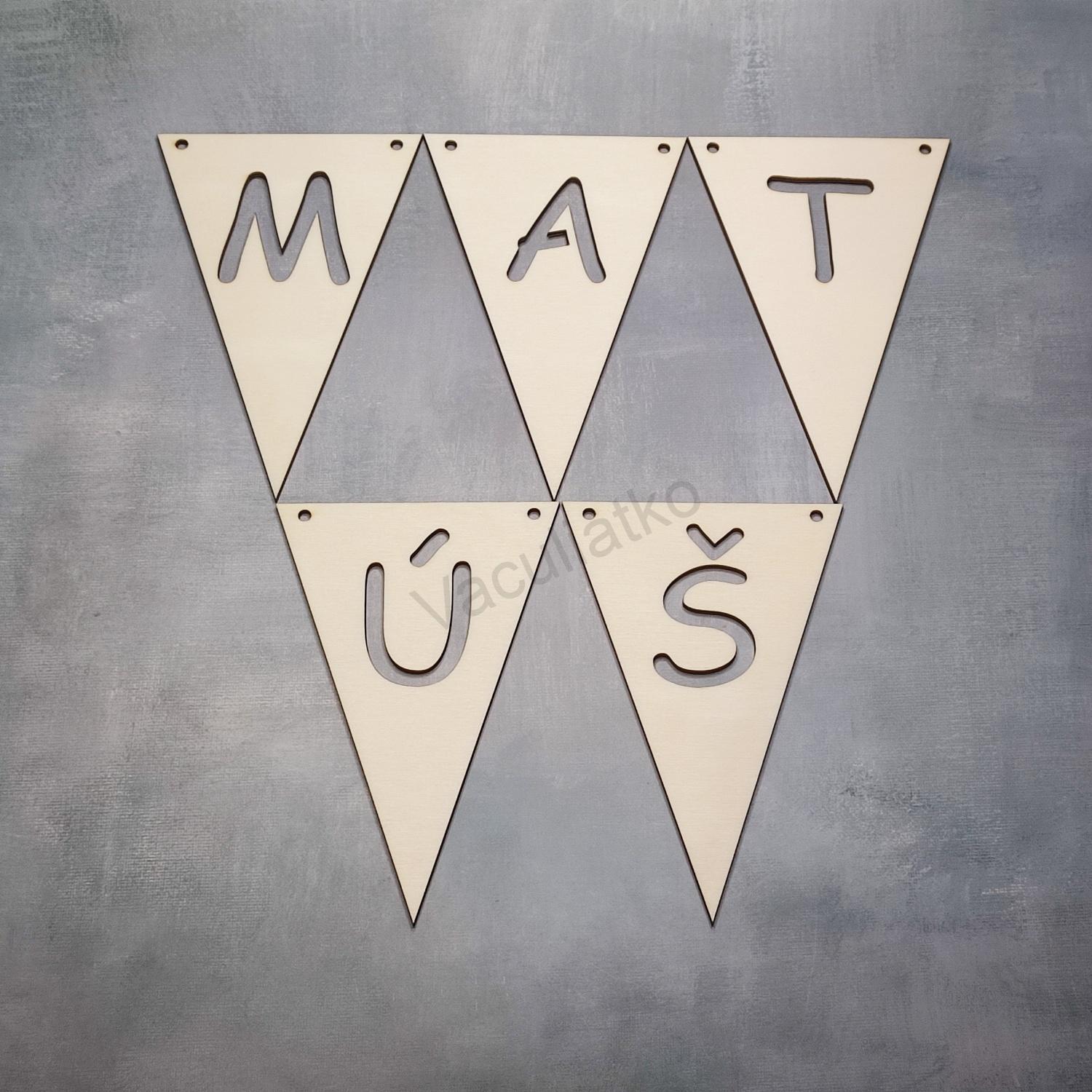 Drevená dekorácia, polotovar vlajka s písmenom, znakom. Písmena (znaky) je potrebné napísať do poznámky. Dodáva sa bez úprav.