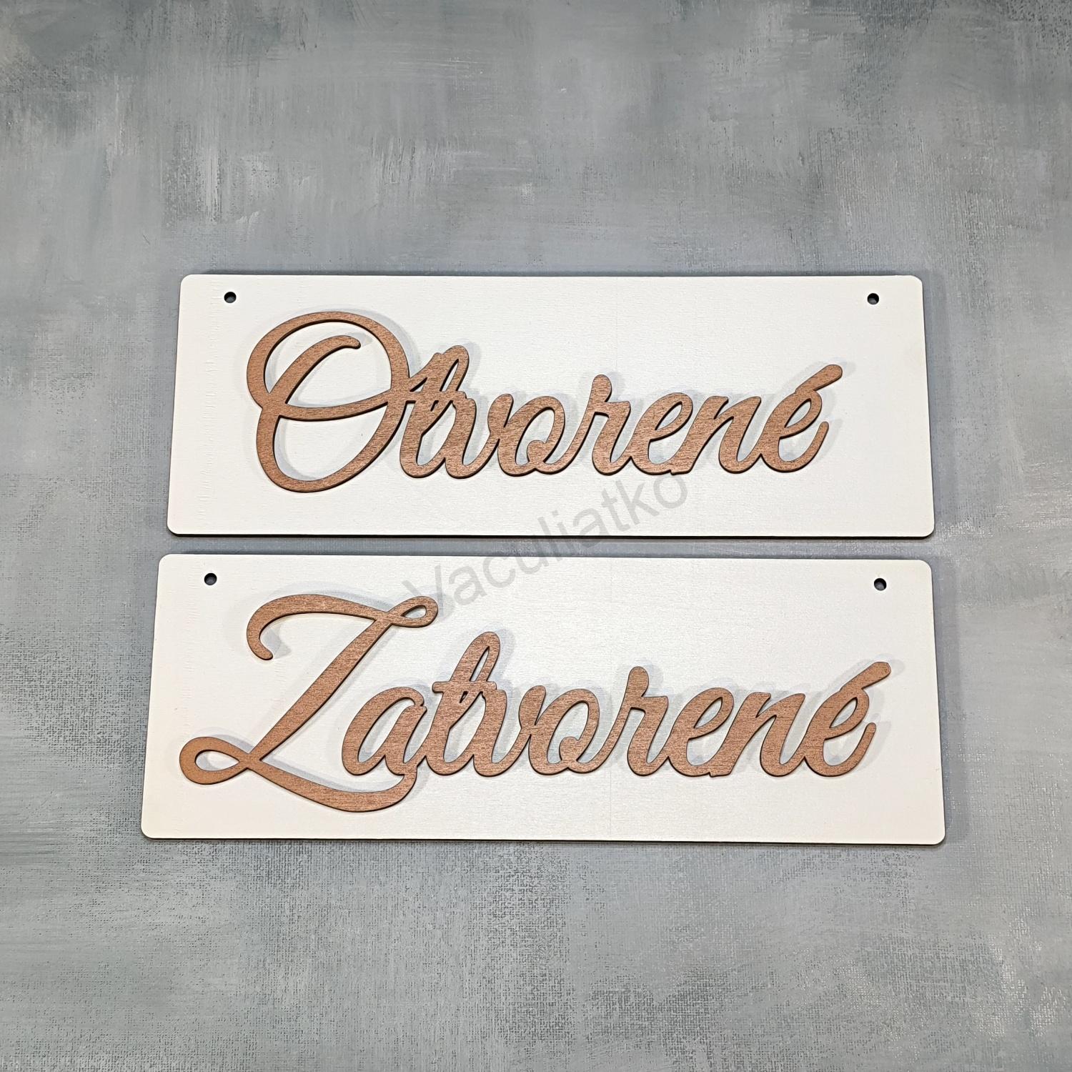 Drevená tabuľka 1ks - 2x nápis Otvorené - Zatvorené. Jedna tabuľka a na jednej strane Otvorené a na druhej Zatvorené.
