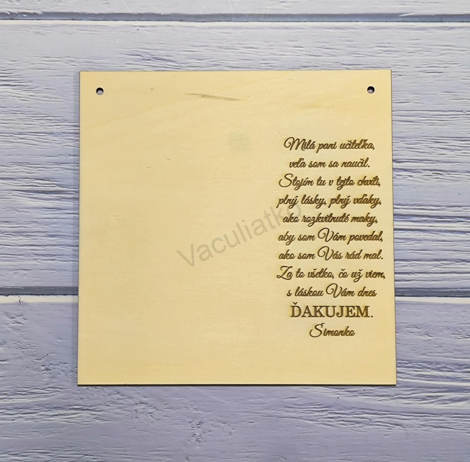 Úvod » Nápisy na tabuľke mix » Drevená tabuľka - s textom "Milá pani učiteľka, ..." + meno na želanie (hr. 3mm, 20cm)