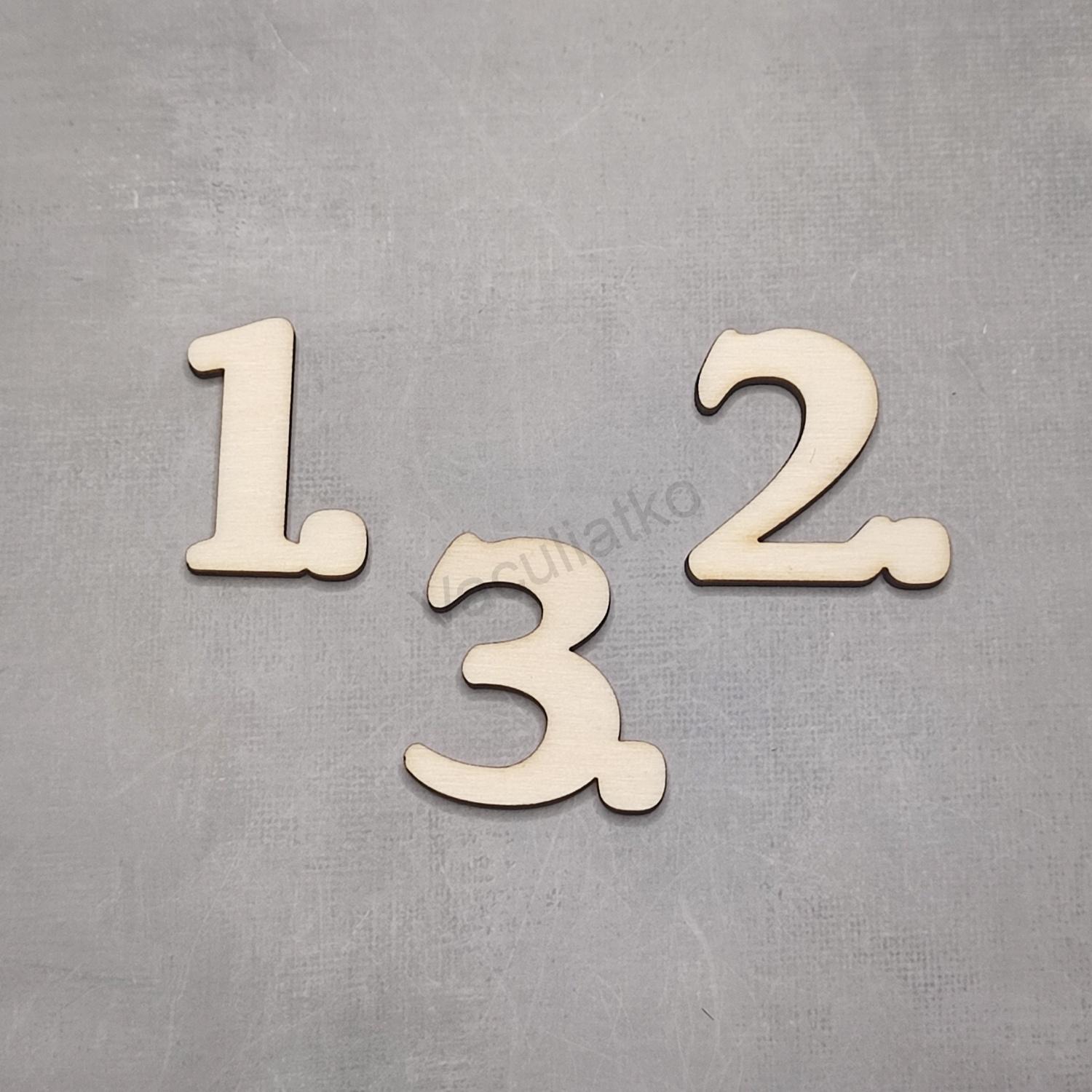 Drevené čísla na medailu - 1. 2. 3. výška 3,5cm, hr. 3mm, bal. 3ks
