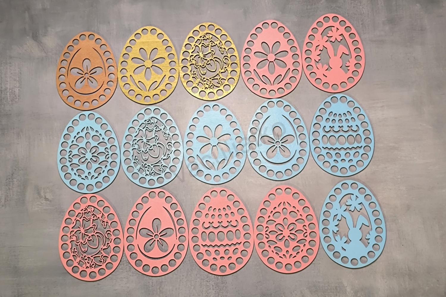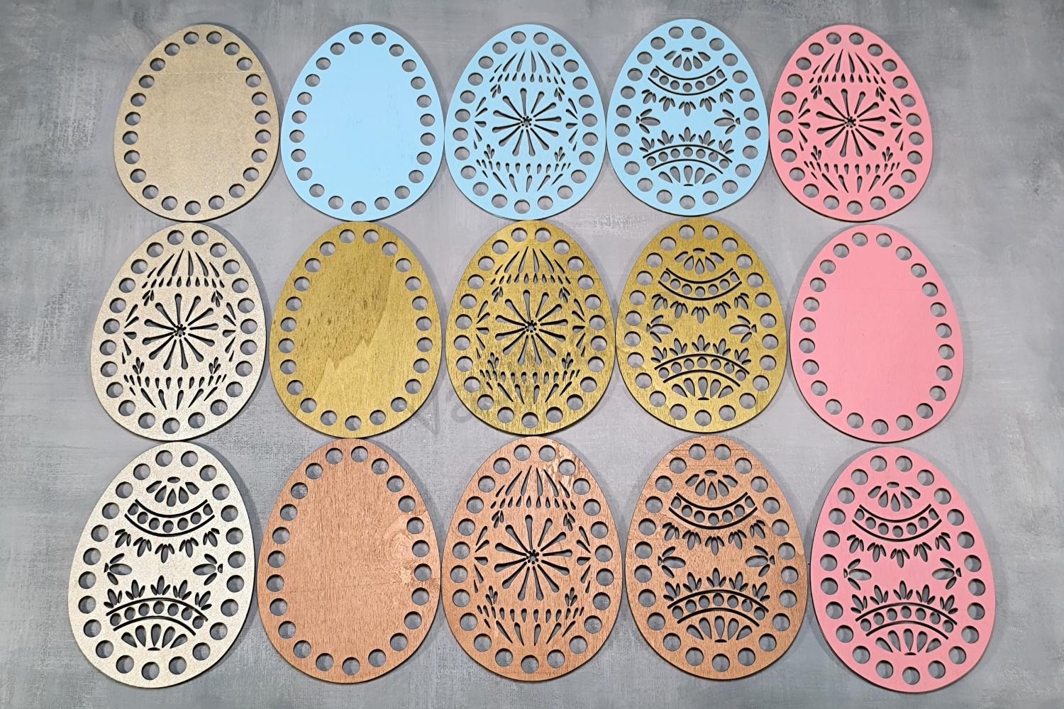 Úvod » Galéria prác » Drevené vajíčka na háčkovanie - farebné