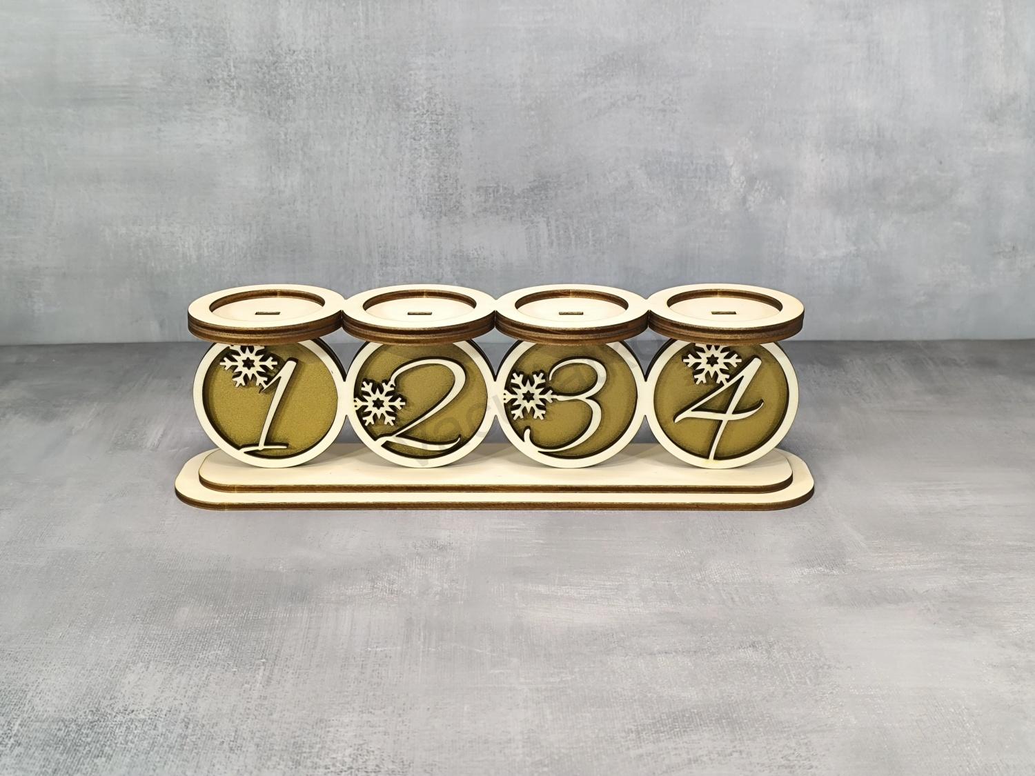 Úvod » Náboženská tematika » Drevený svietnik advent - čísla 1-2-3-4 zlatý 29,5x8,5cm
