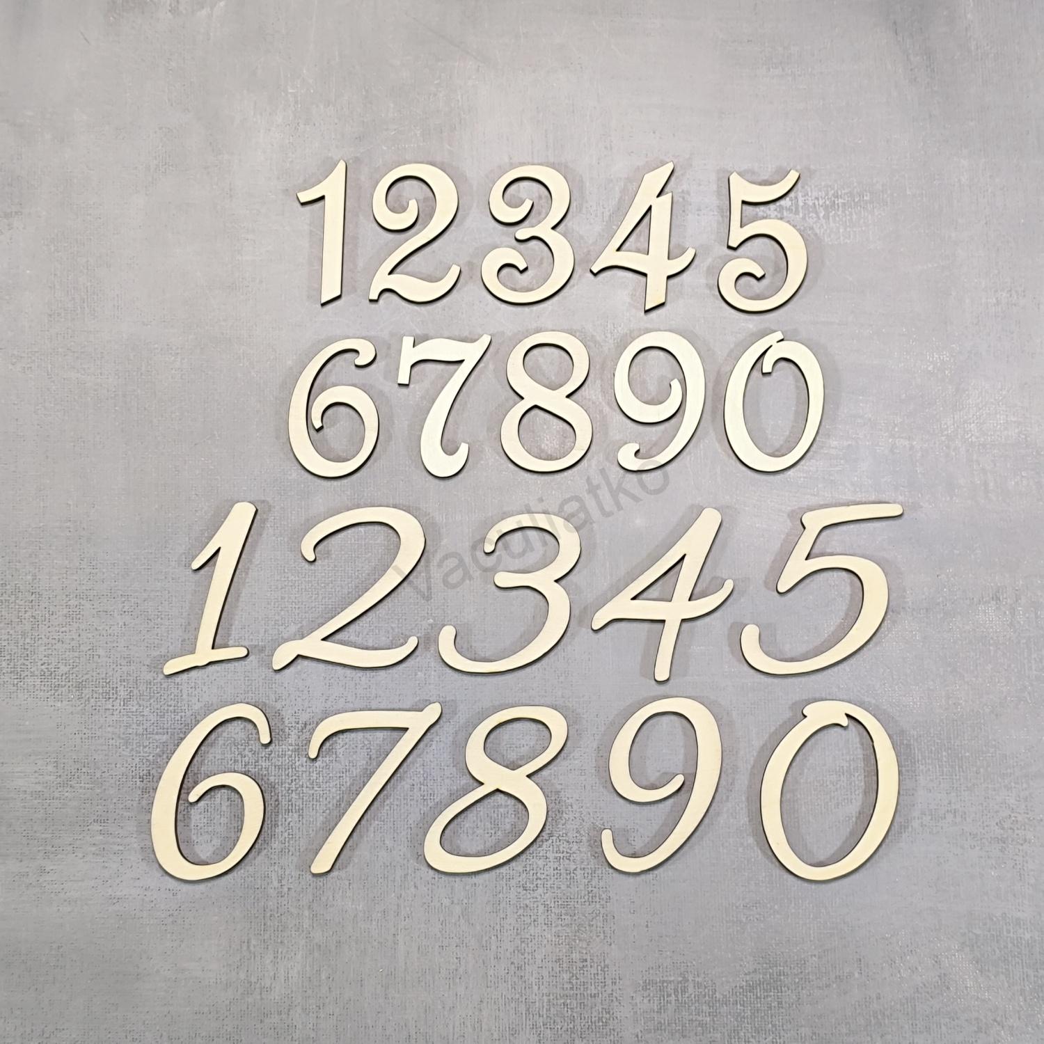 Drevený výrez číslo - výška 5-5,5cm (hr. 3mm, 1ks)