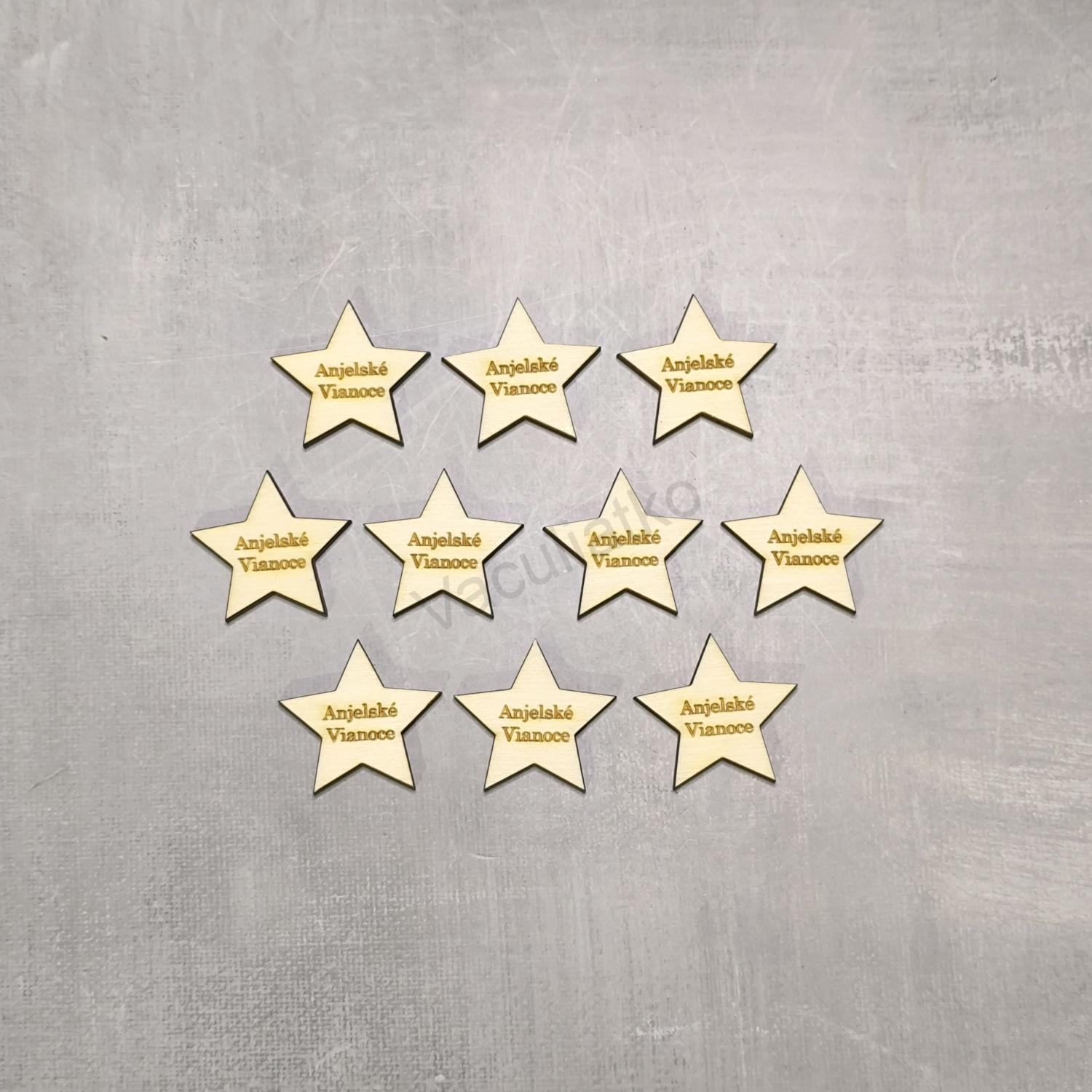 Úvod » Hviezdy » Drevený výrez - hviezda 3cm s textom Anjelské Vianoce 10ks (tl.)