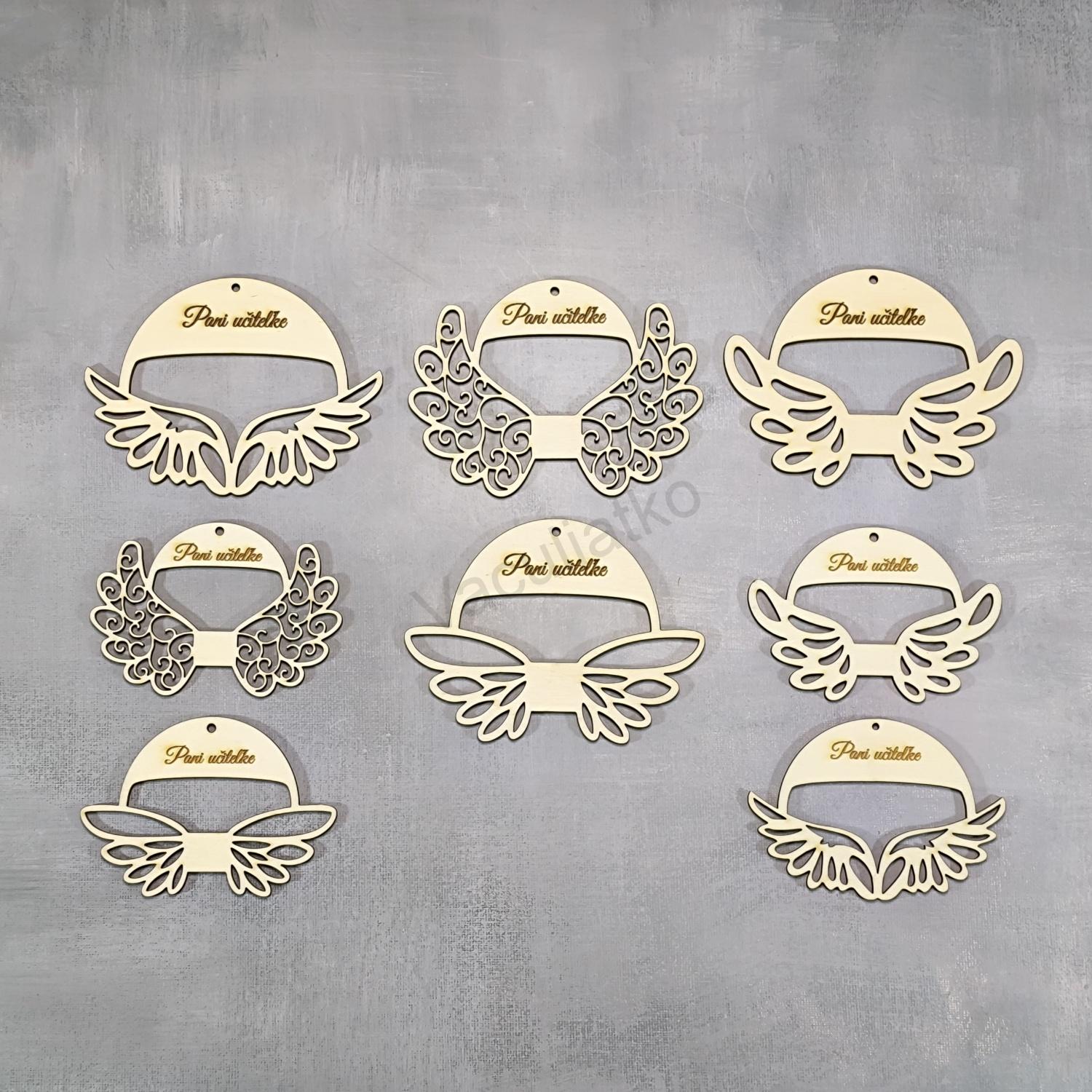Drevený výrez - krídla 10x7cm v04 (oblúk s textom - Pani učiteľke)