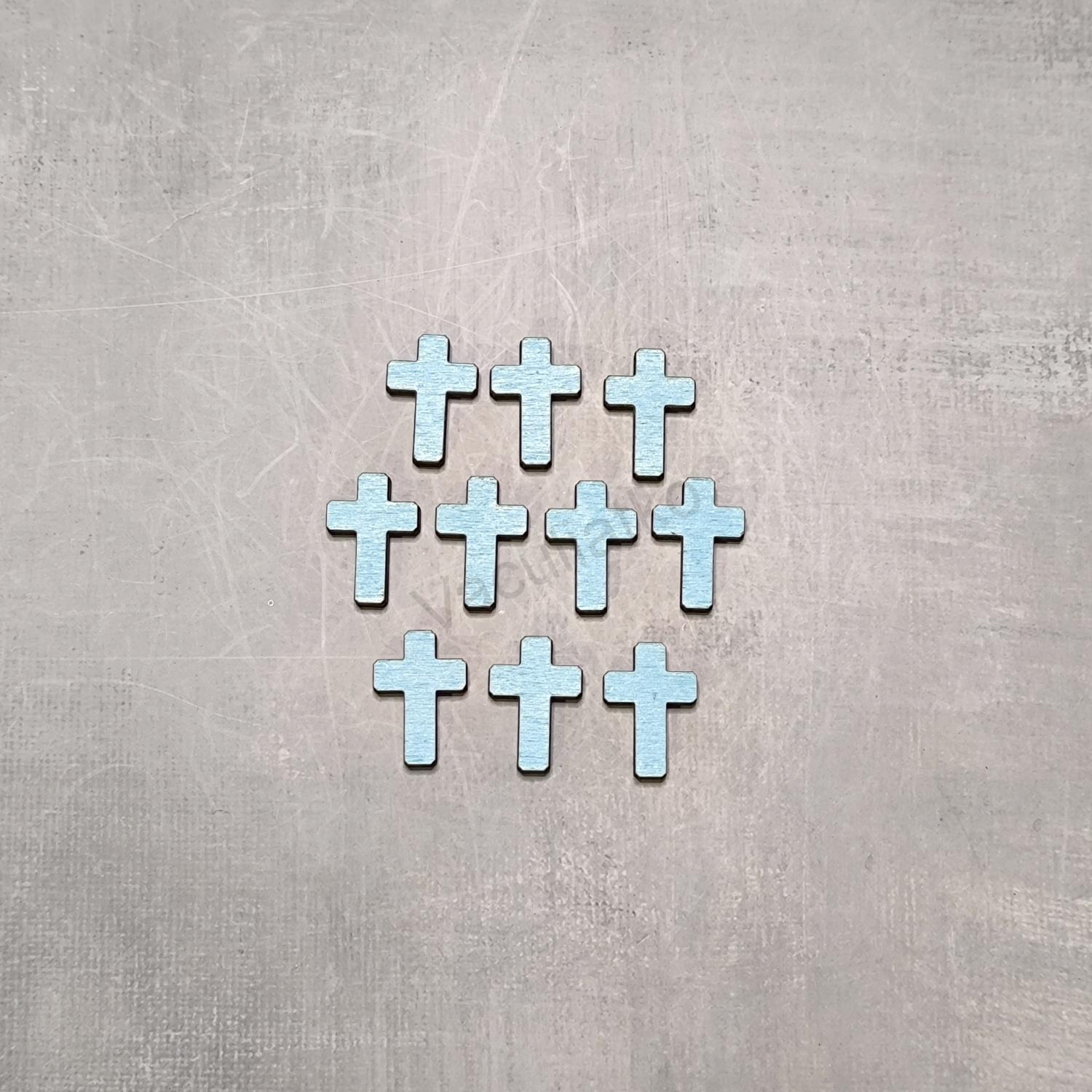 Drevený výrez - kríž 14x20mm, sada 10ks v01 F-blankytná modrá