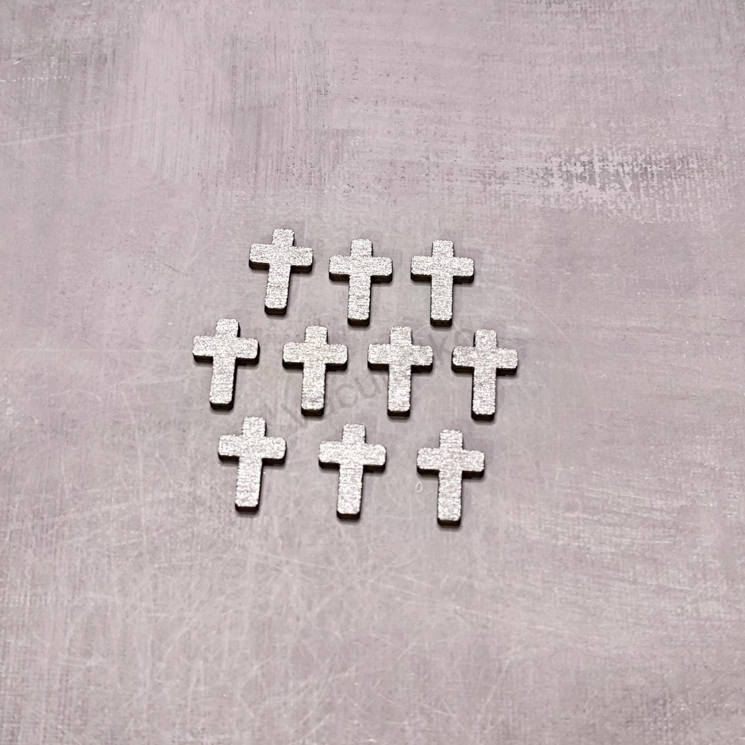 Úvod » Výrezy "Na dušičky" » Drevený výrez - kríž 21x30mm, sada 10ks v01 F-strieborná