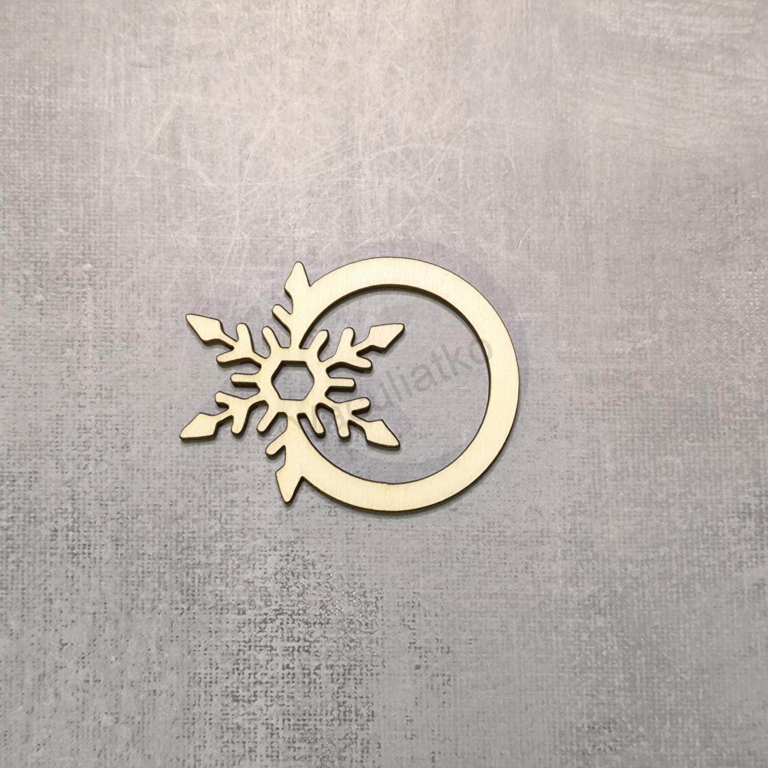 Drevený výrez - kruh 5cm vločka (v06)