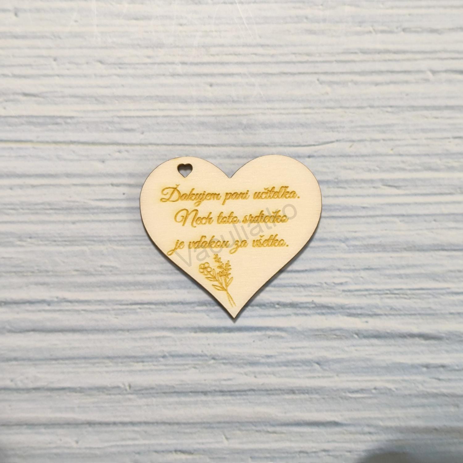 Úvod » Pre učiteľov » Drevený výrez - srdce 5x4,5cm Ďakujem pani učiteľka ... (v01)