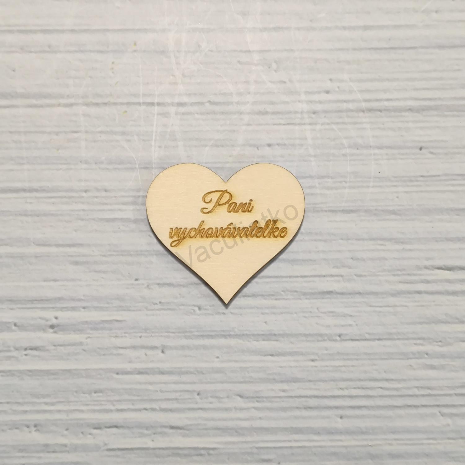 Drevený výrez - srdce 5x4,5cm s textom: Pani vychovávateľke