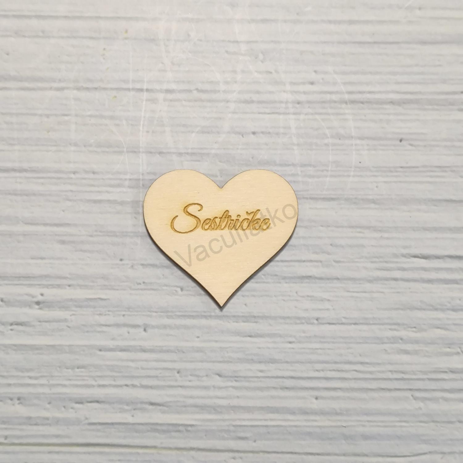 Úvod » Srdiečka - text » Drevený výrez - srdce 5x4,5cm s textom: Sestričke