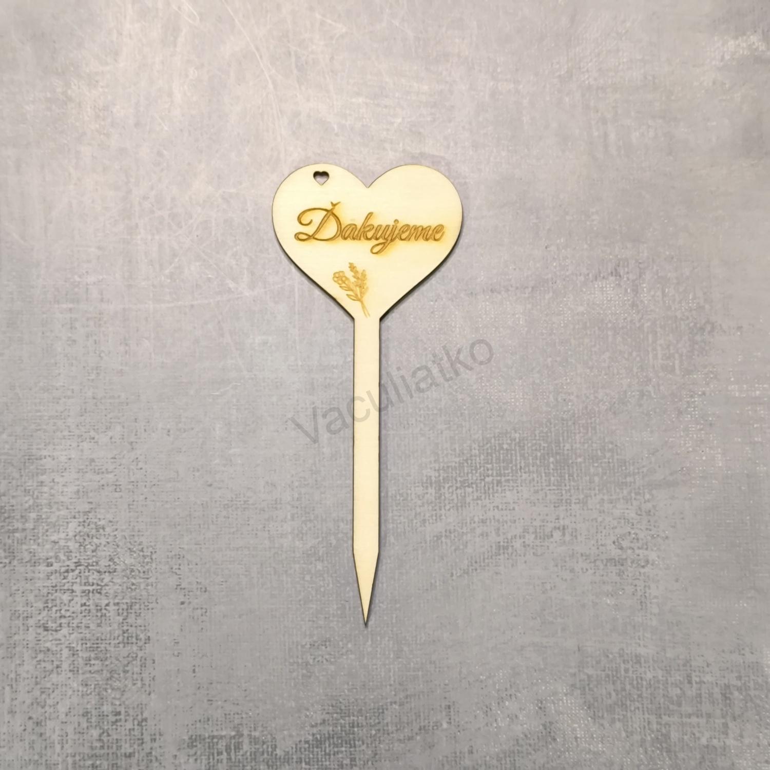Drevený výrez v tvare srdca s vygravírovaným textom Ďakujem. Zmena textu je možná. V prípade otázok nás kontaktujte cez FB alebo emailom info@vaculiatko.eu