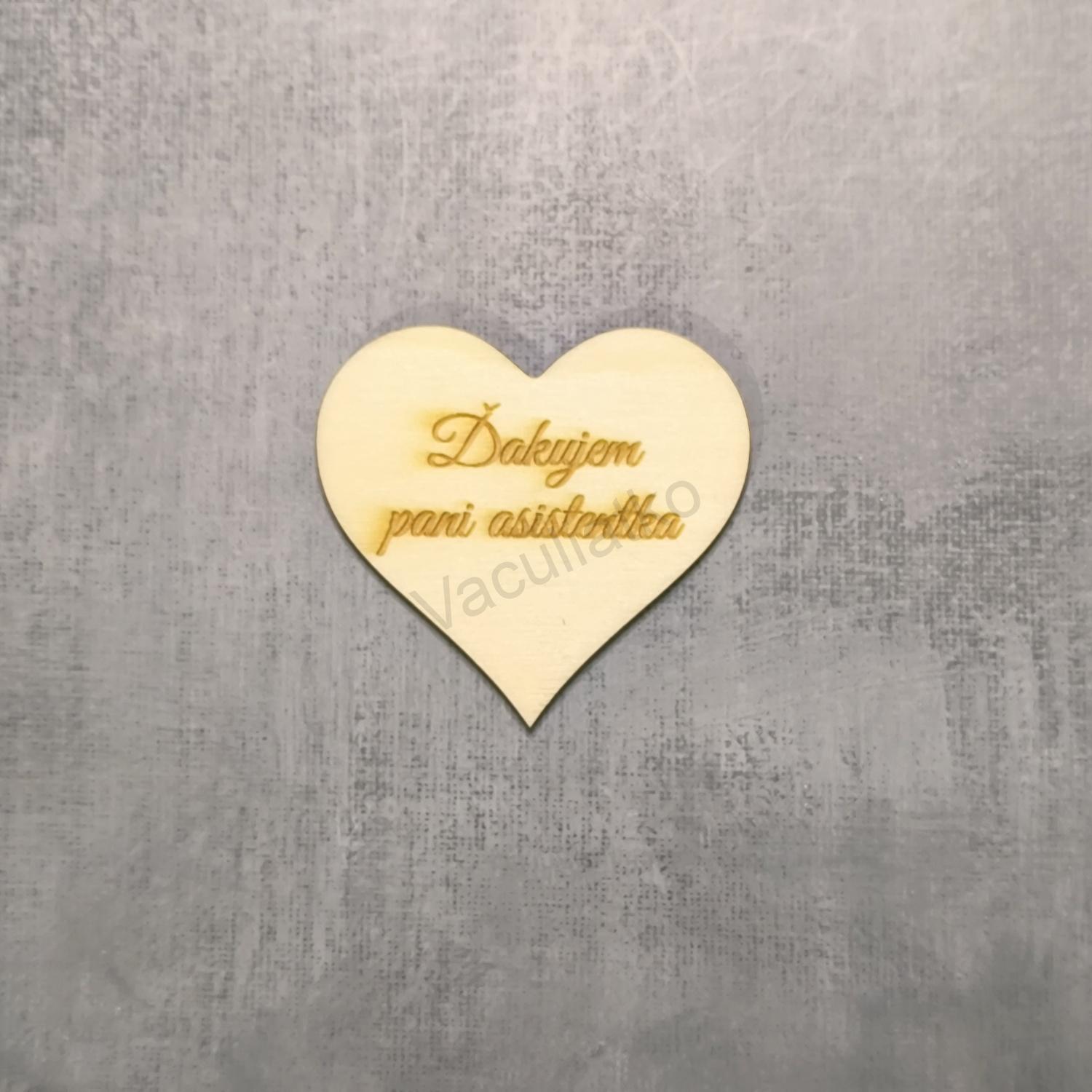 Úvod » Srdiečka - text » Drevený výrez - srdce 6,5x6cm s textom: Ďakujem pani asistentka