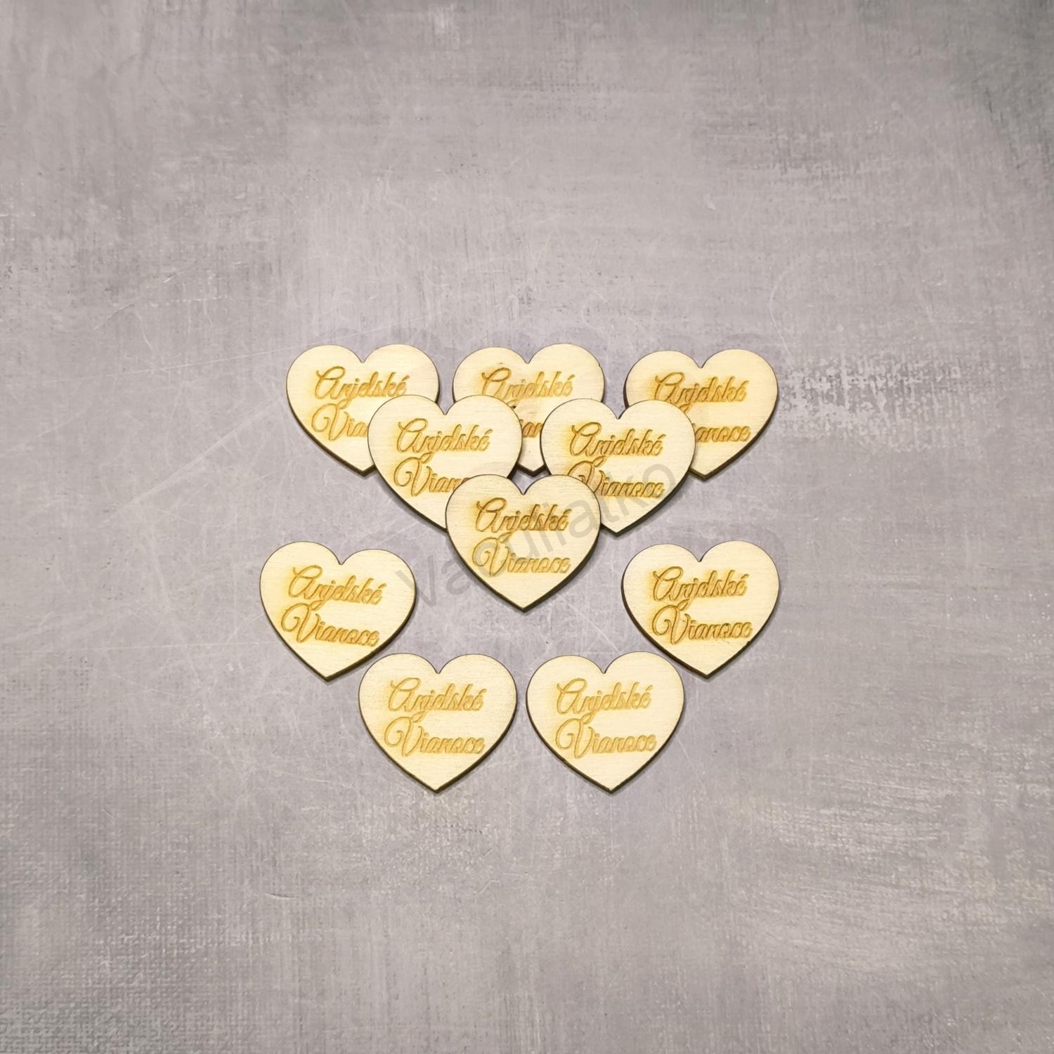 Úvod » Srdiečka - text » Drevený výrez - srdce "Anjelské Vianoce" 30mm 10ks (plnšie)