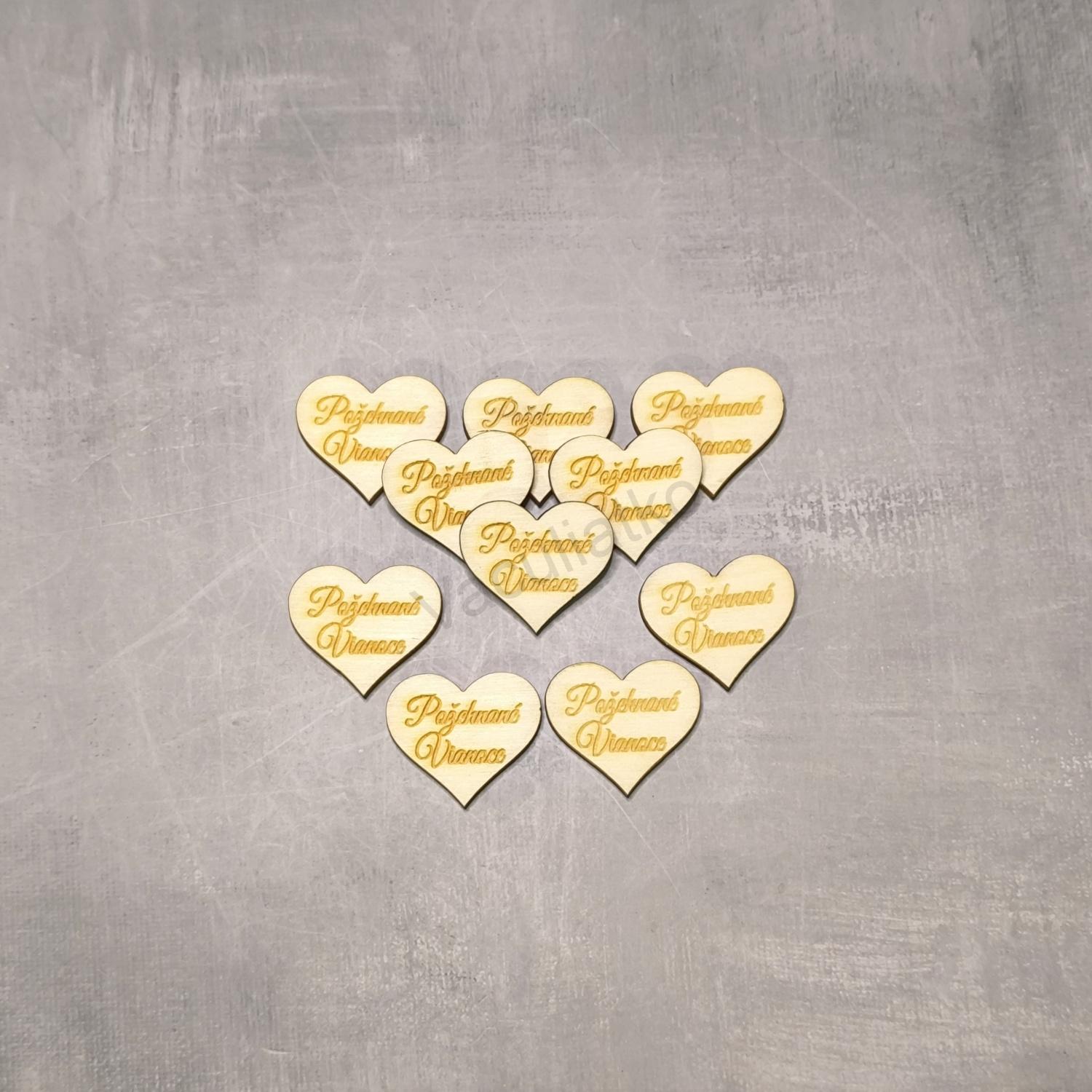 Drevený výrez - srdce "Požehnané Vianoce" 30mm 10ks (užšie)