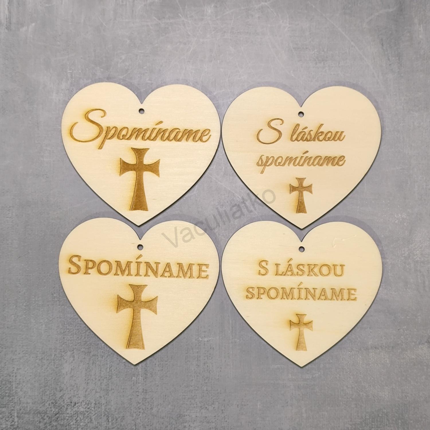 Drevený výrez - srdce s láskou spomíname 10x9cm (krížik, pís.)
