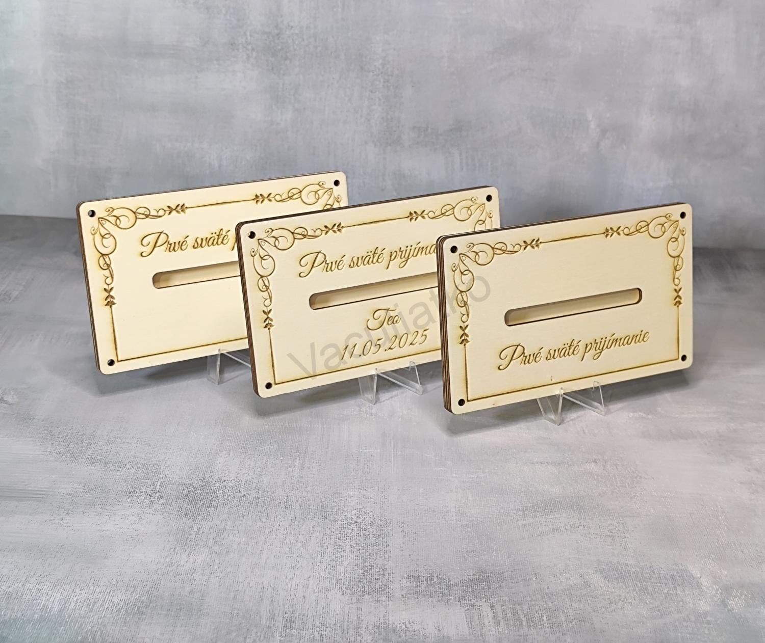 Úvod » Drevené darčeky a dekorácie » Krabička na darovanie peňazí 18x11cm - Prvé sväté prijímanie (v02)