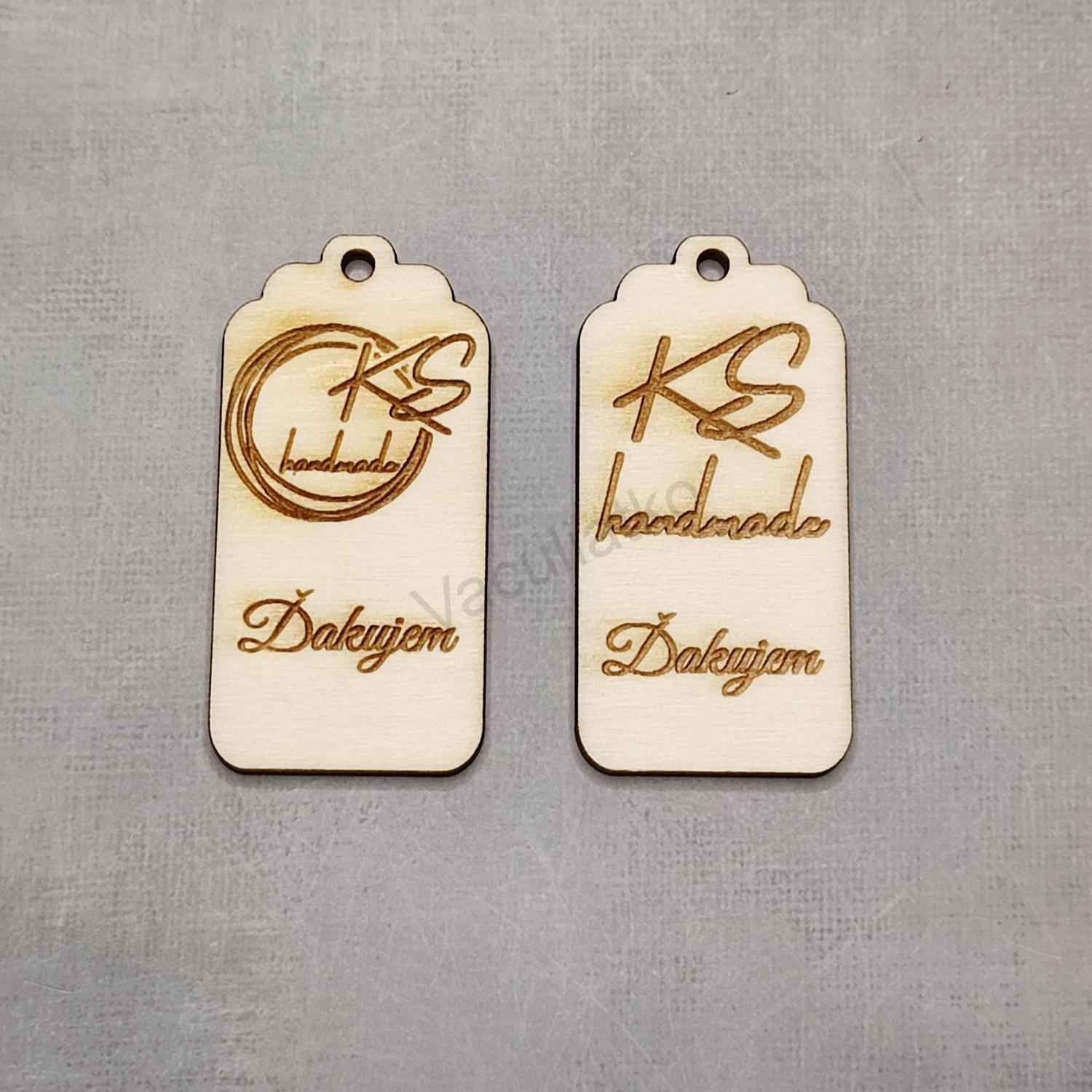 Drevená tabuľka, štítok s textom, logom na želanie. Text je potrebný napísať do poznámky, ak máte aj logo alebo konkrétne písmo je potrebné zaslať na mail info@vaculiatko.eu najlepšie pred odoslaním objednávky. Cena je za balenie 25ks