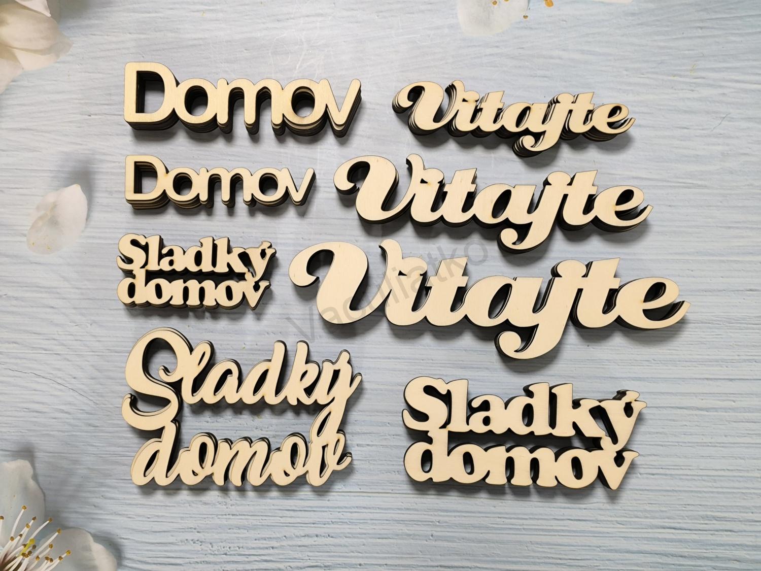Úvod » Výpredaj » Výpredaj - drevené nápisy Vitajte, Domov 40ks (hr.4-5mm, 10-12-15-20-25cm po 5ks)