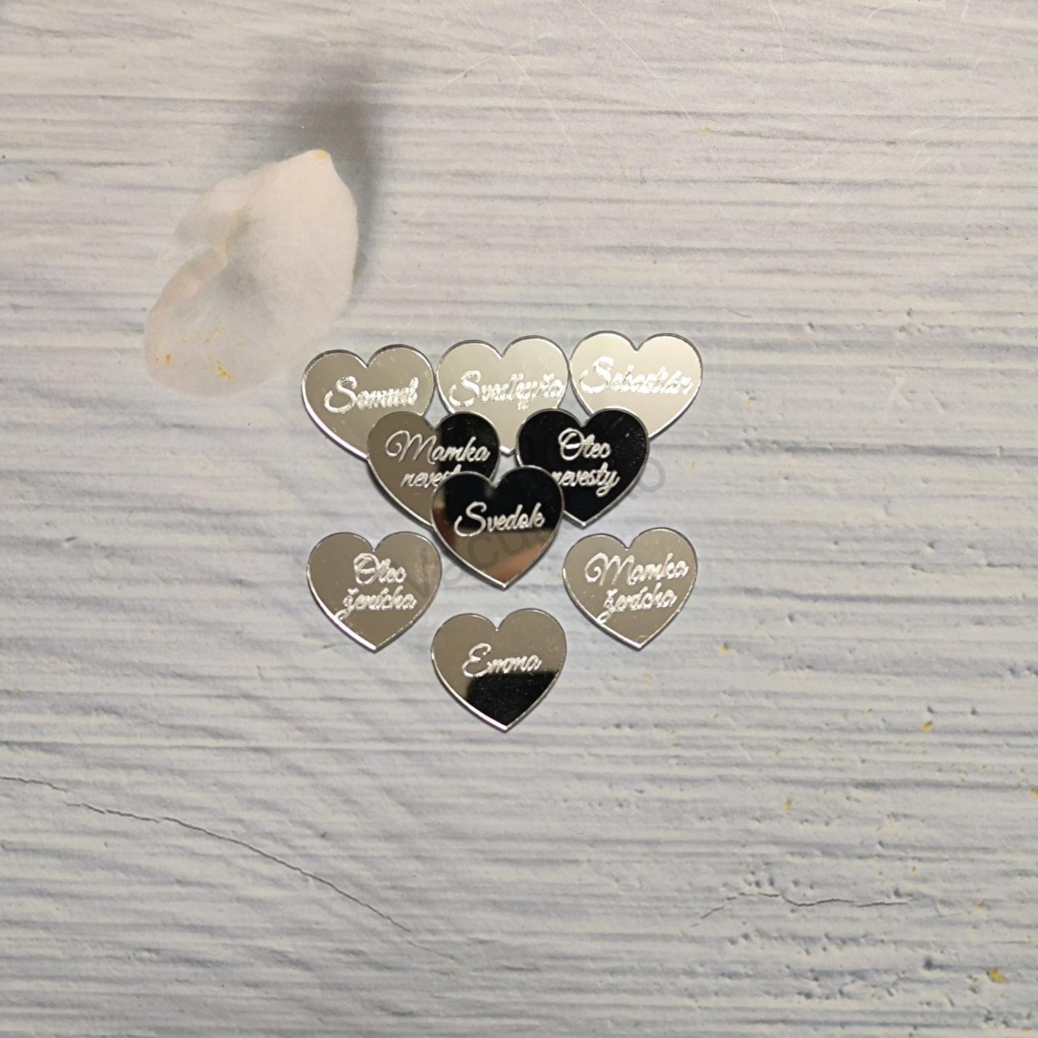 Úvod » Svadba a oslavy » Zrkadlové plexi - srdce 2,5cm s textom 1ks (pís., F-strieborná), hr.2mm