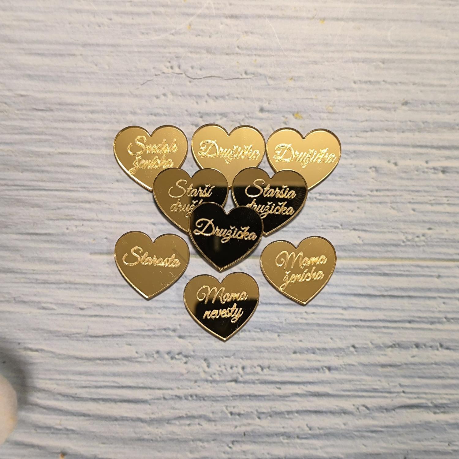 Úvod » Svadba a oslavy » Zrkadlové plexi - srdce 2,5cm s textom 1ks (pís., F-zlatá), hr.2mm